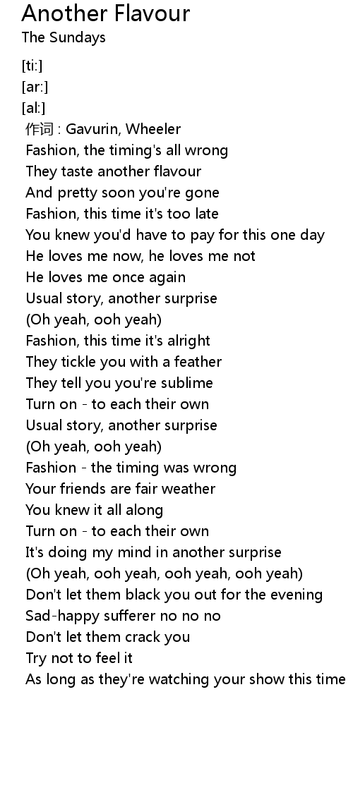| [00:18.64] | They taste another flavour |