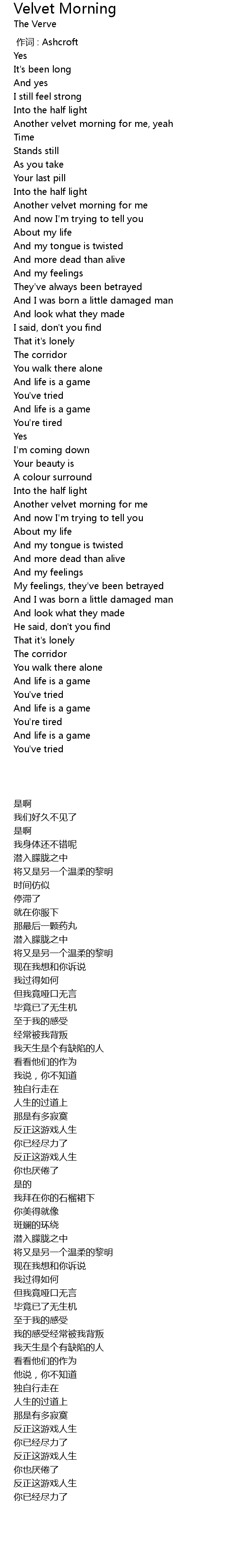 | [00:00.00] | 作词 : Ashcroft |