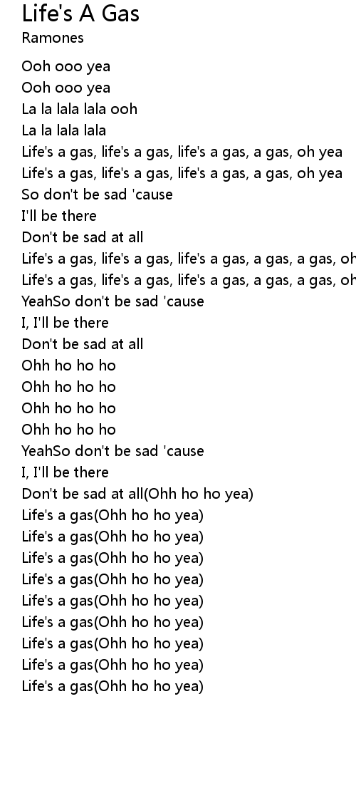 Life's a gas, life's a gas, life's a gas, a gas, oh yea |