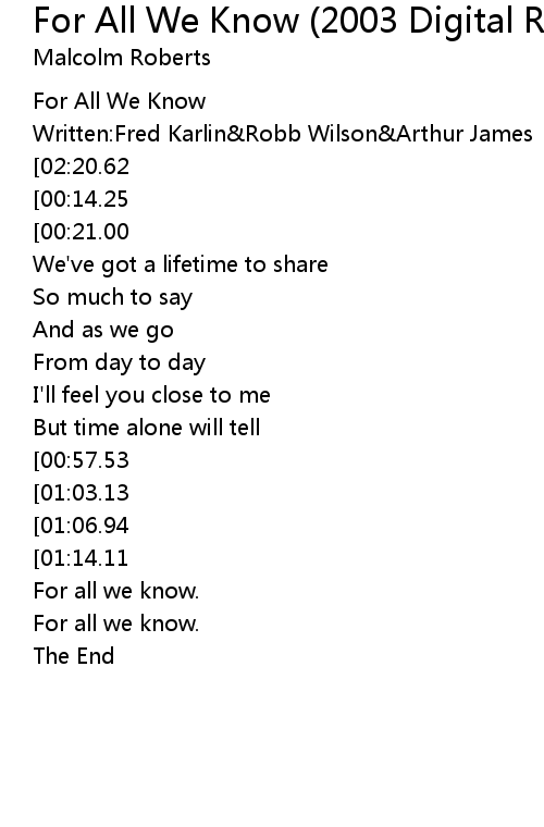 For All We Know (2003 Digital Remaster) Lyrics