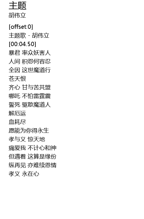 | [00:00.53] | 主题歌 - 胡伟立 |