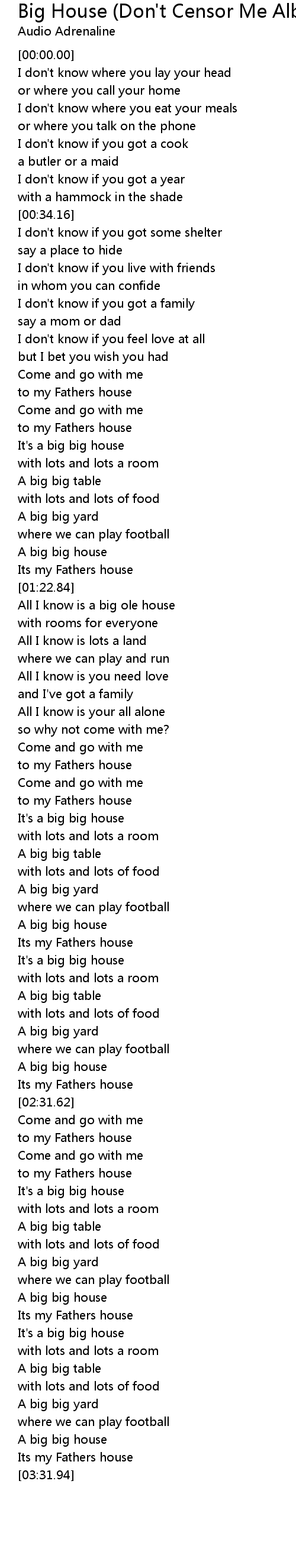All I know is a big ole house |