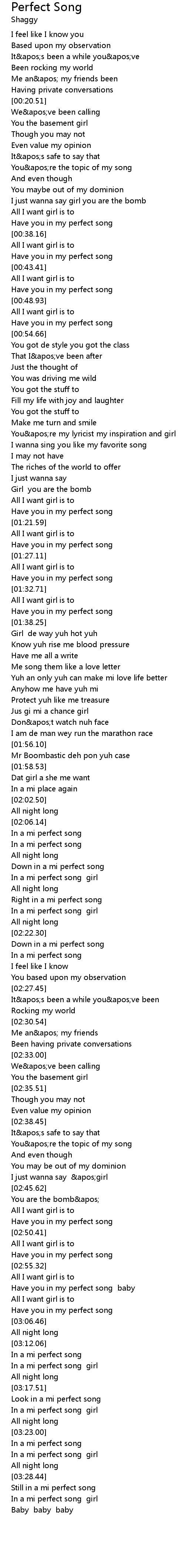 In a mi perfect song girl |
