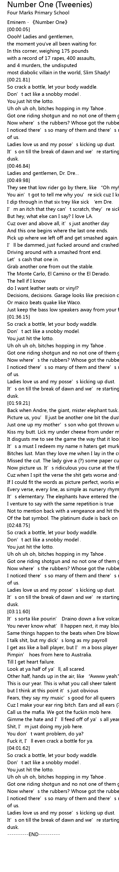 | [00:00.00] | Eminem Number One |