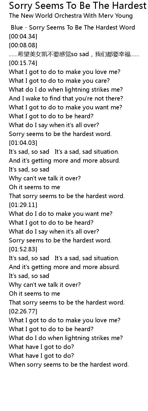 | [00:58.31] | Sorry seems to be the hardest word. |