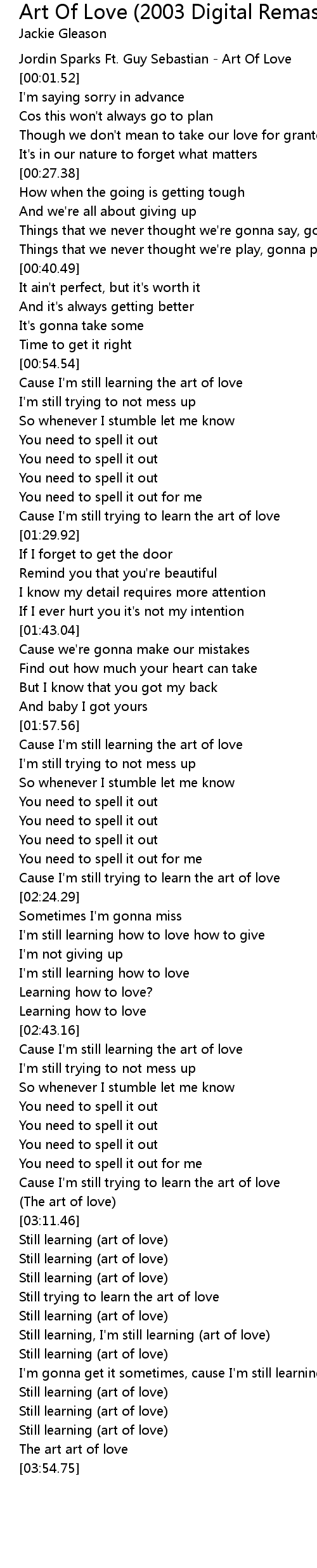 Cause I'm still trying to learn the art of love |
