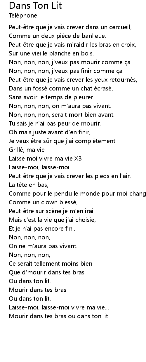 | Laisse-moi, laisse-moi vivre ma vie... | |