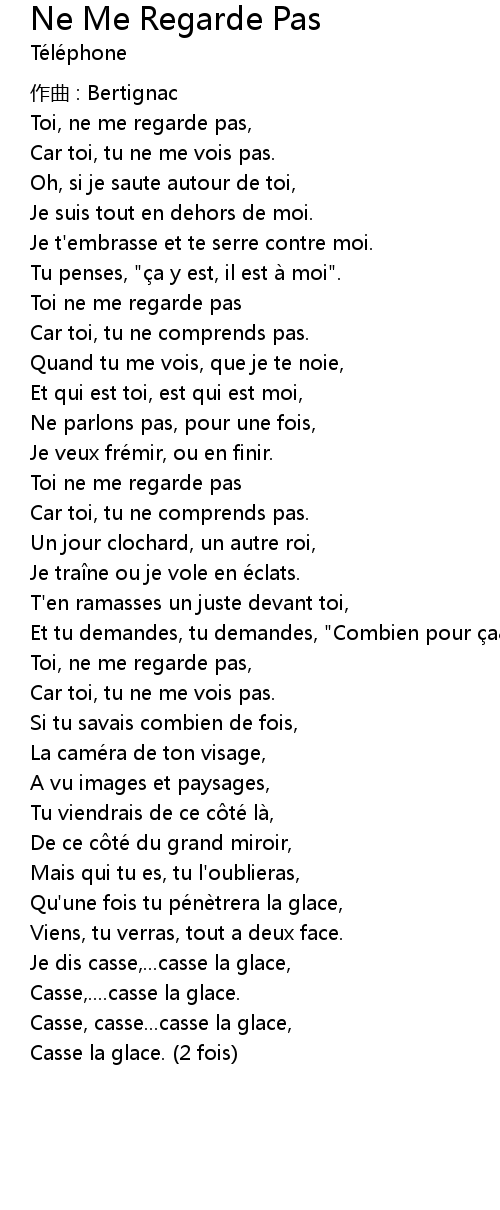 | Toi, ne me regarde pas, | |