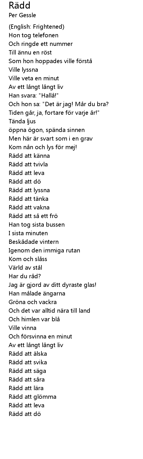 | Och hon sa: "Det är jag! Mår du bra? | |