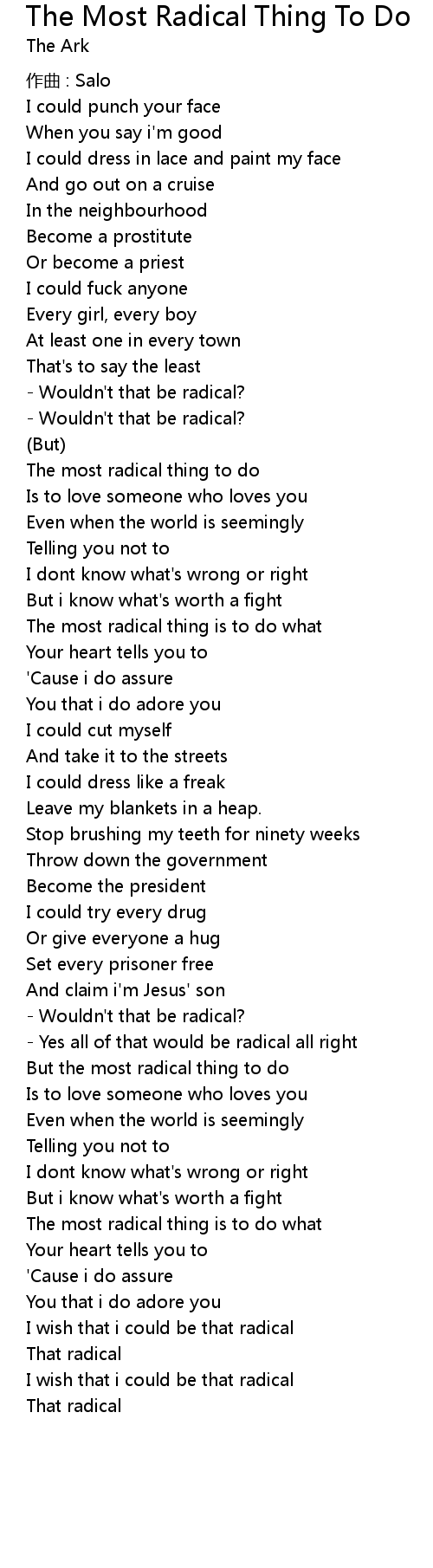| Song | The Most Radical Thing To Do |