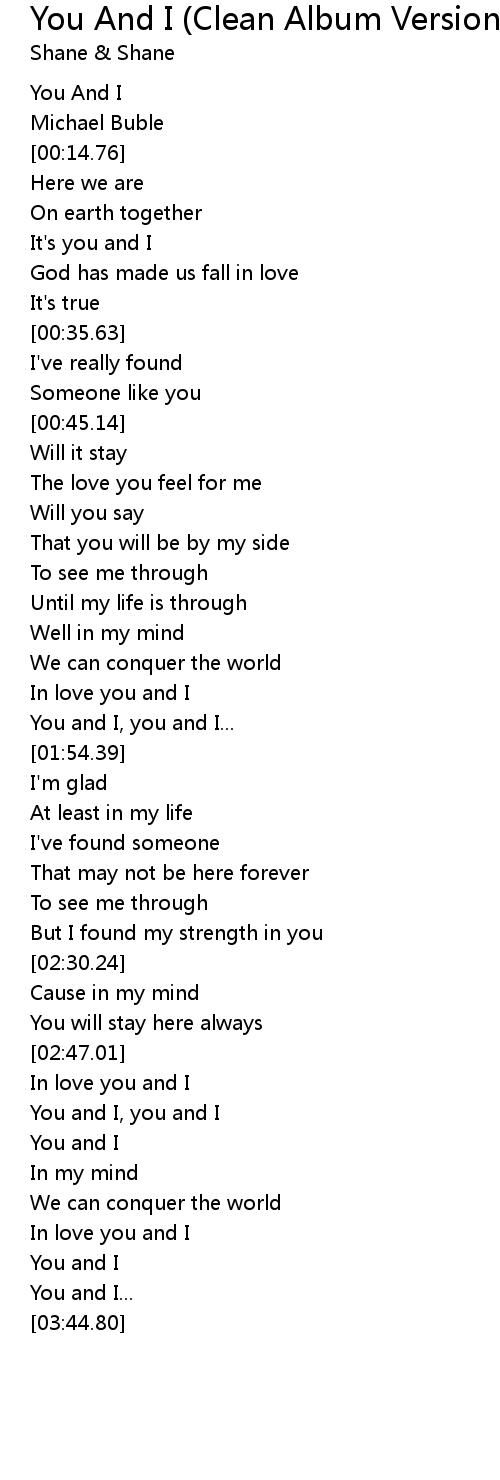 You And I (Clean Album Version) Lyrics