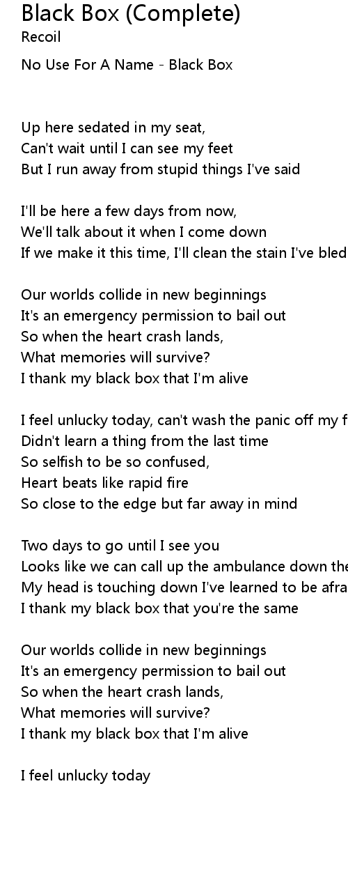 I thank my black box that I'm alive |