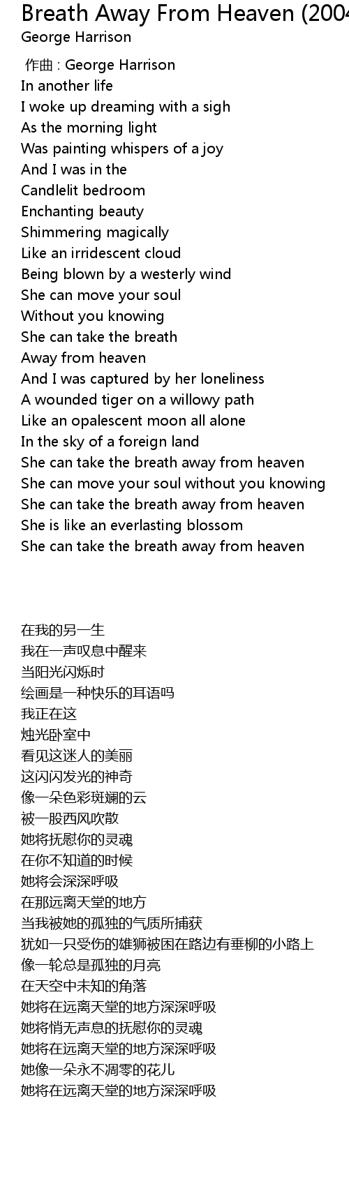 | [03:23.47] | She can take the breath away from heaven |