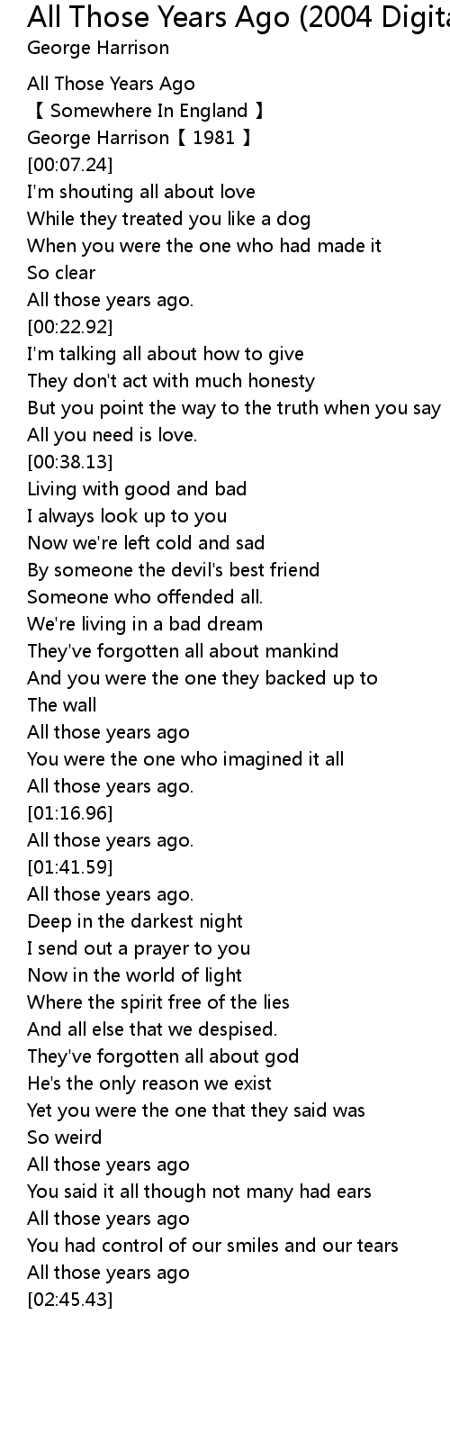| [00:00.00] | All Those Years Ago |