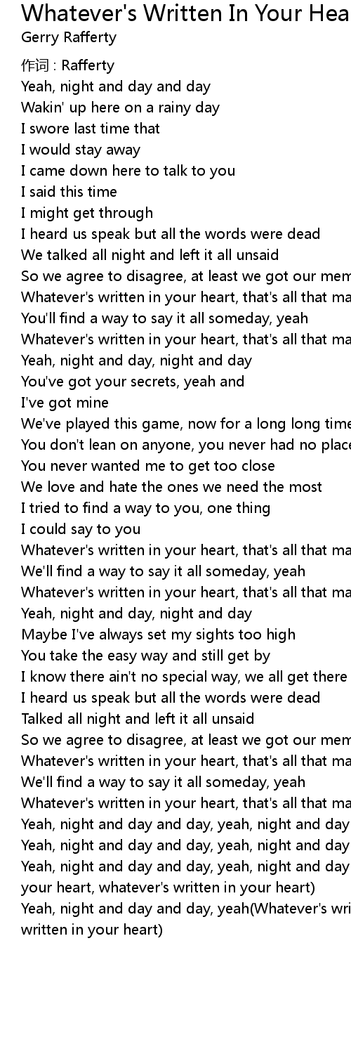 | Yeah, night and day and day, yeah Whatever' s written in your heart, whatever' s written in your heart |