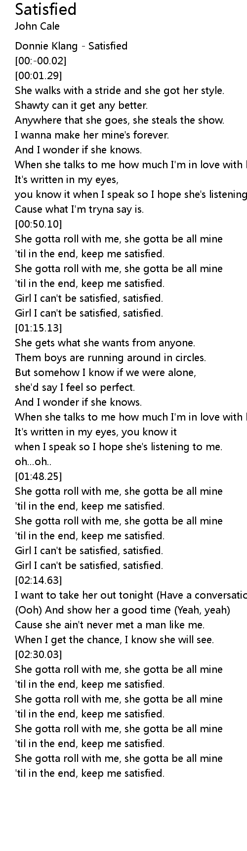 'til in the end, keep me satisfied. |