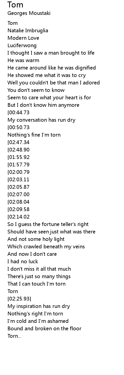 | [03:05.83][02:47.34][01:48.87][00:57.35] |