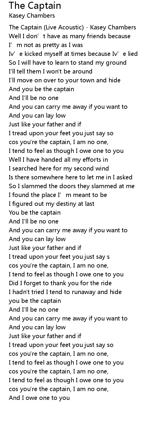 | [0-1:52.290] | The Captain (Live Acoustic) - Kasey Chambers |
