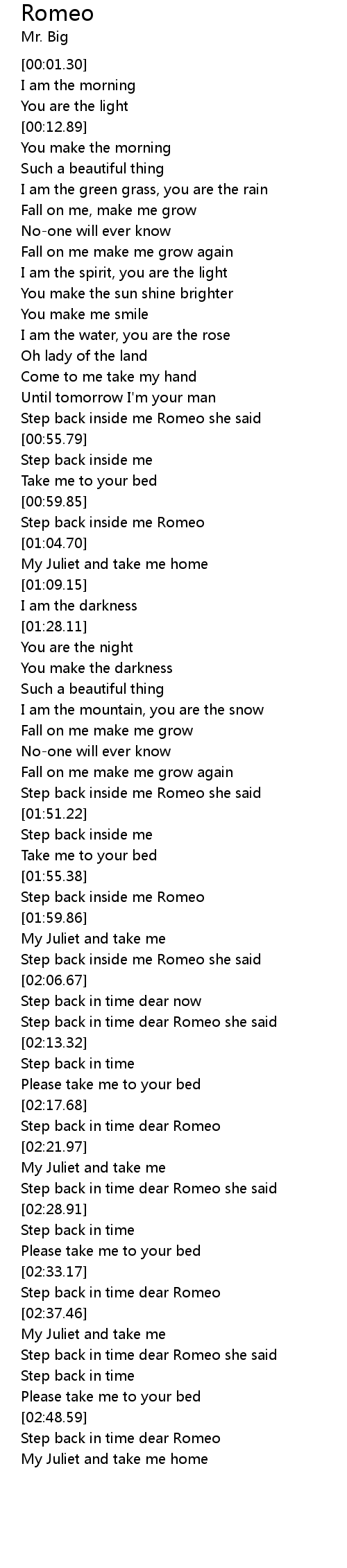 Step back in time dear Romeo she said |