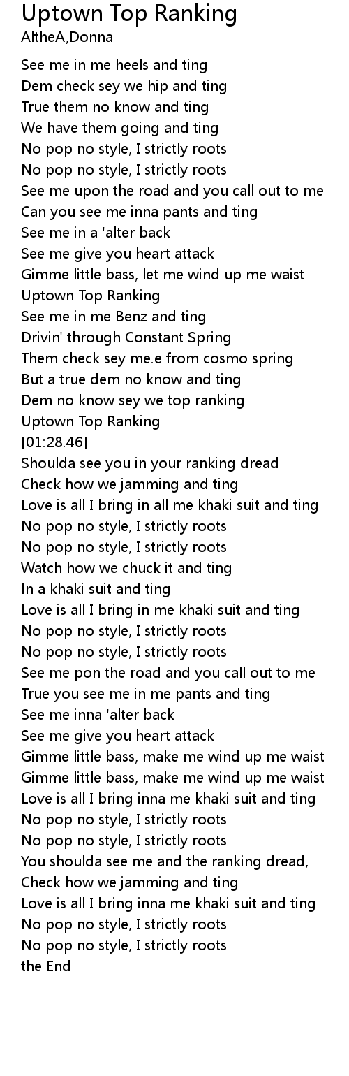 | [01:02.53] | Uptown Top Ranking |