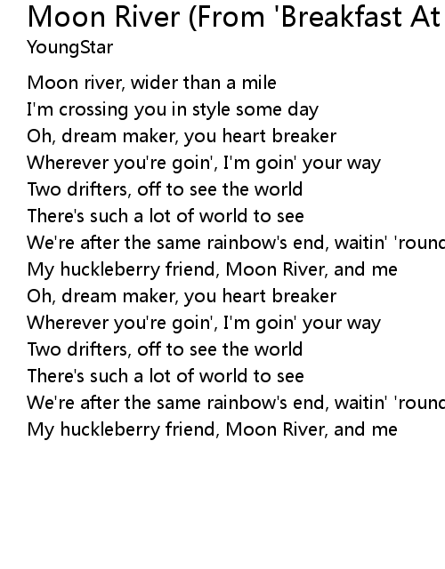 Moon River (From 'Breakfast At Tiffany's') Lyrics