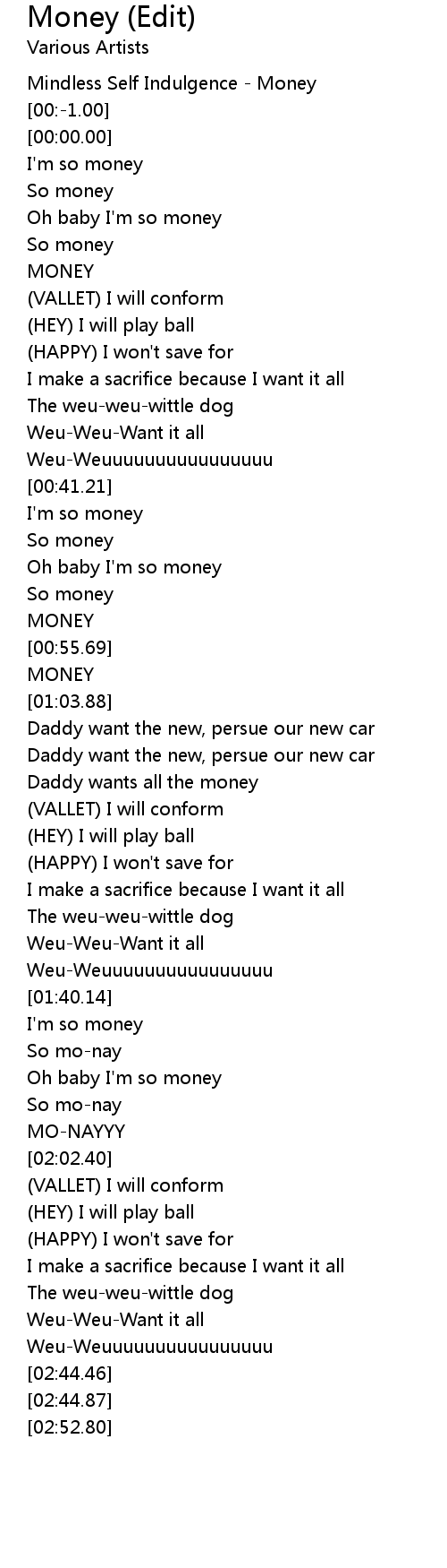 Money (Edit) Lyrics