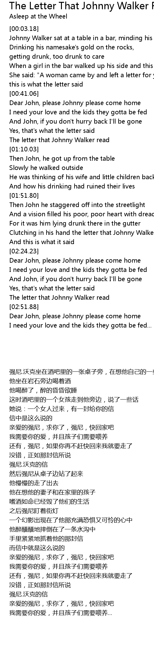 The letter that Johnny Walker read |