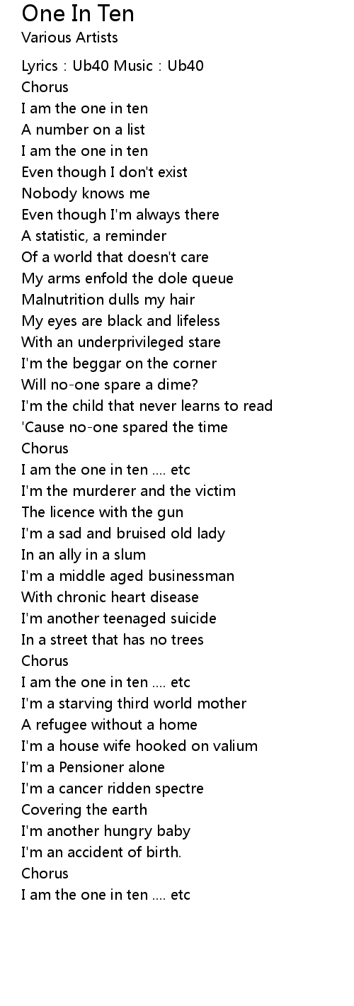 | I am the one in ten .... etc | |