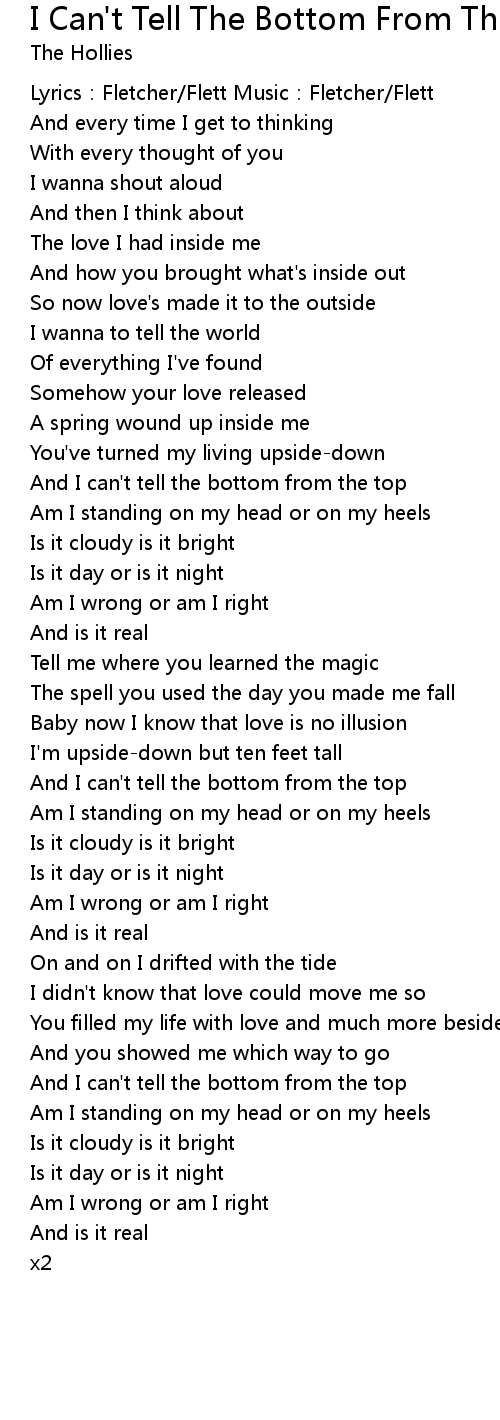 | And I can' t tell the bottom from the top | |