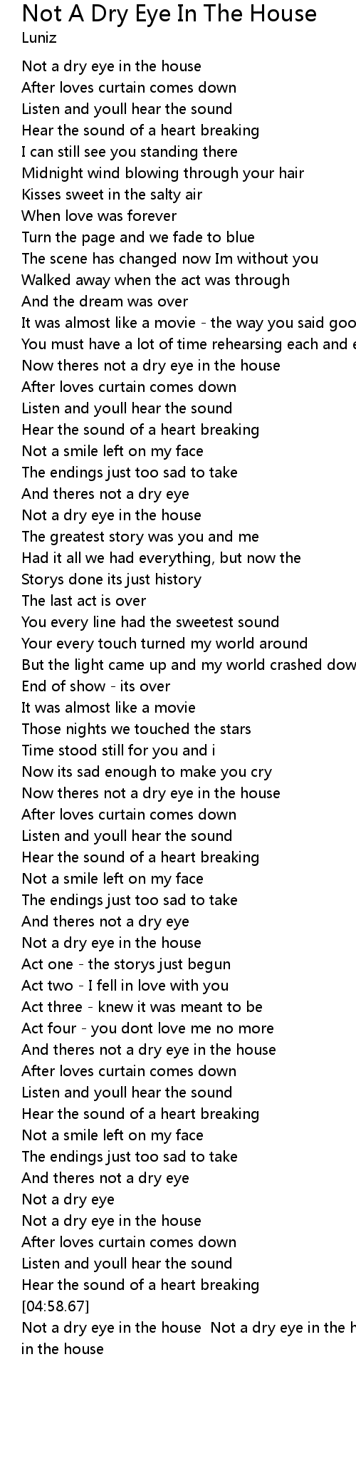 Not a dry eye in the house Not a dry eye in the house Not a dry eye in the house |
