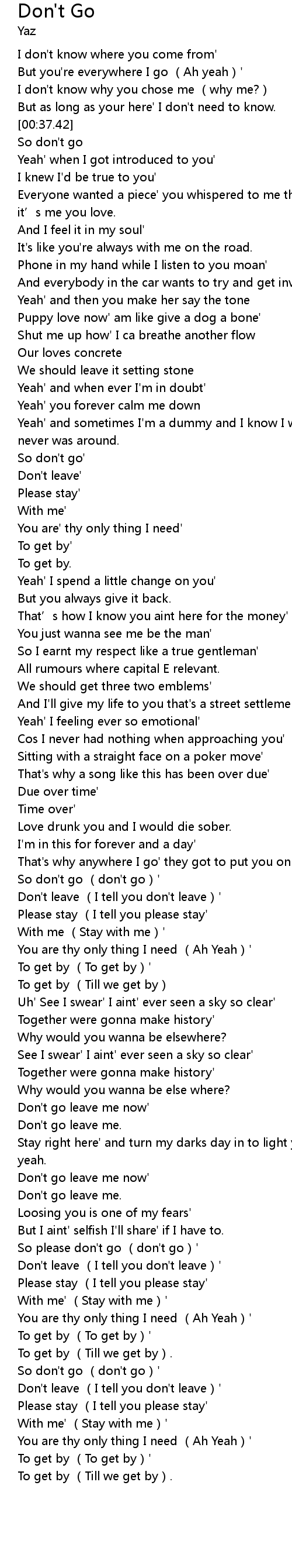 | [00:38.35] | So don't go |