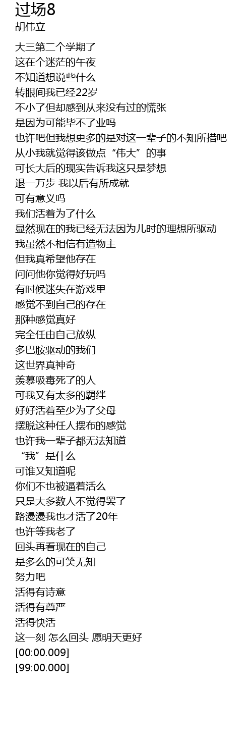 | [01:18.72] | 我们活着为了什么 |
