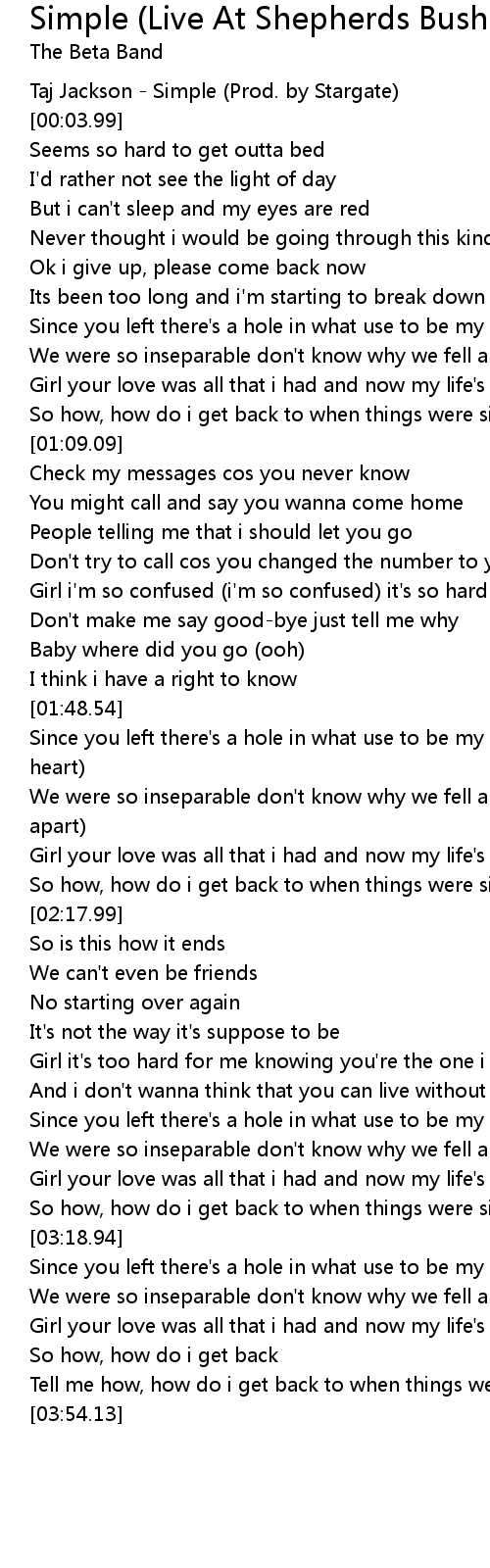 [00:00.85] Taj Jackson - Simple (Prod. by Stargate)