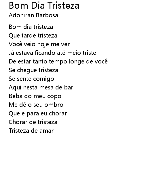 | Song | Bom Dia Tristeza |