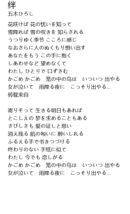 かごめ かごめ 笼の中の鸟は いついつ 出やる |