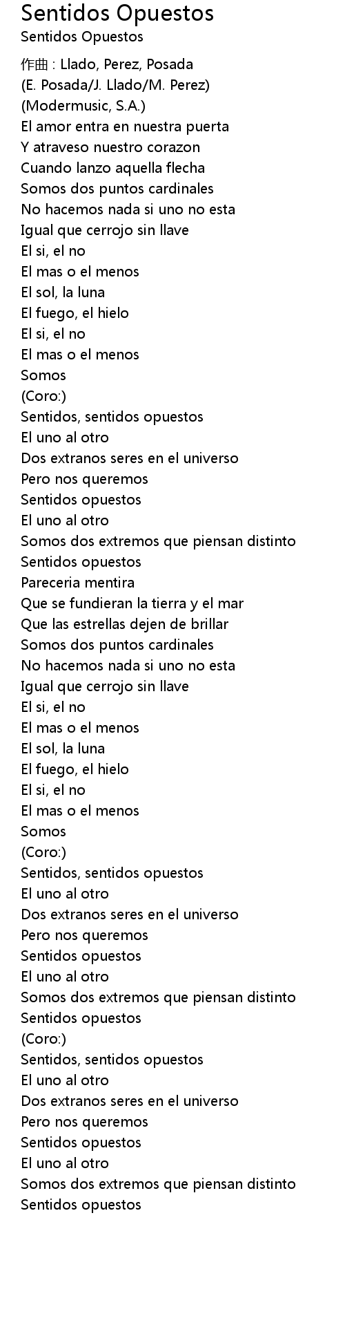 | Song | Sentidos Opuestos |