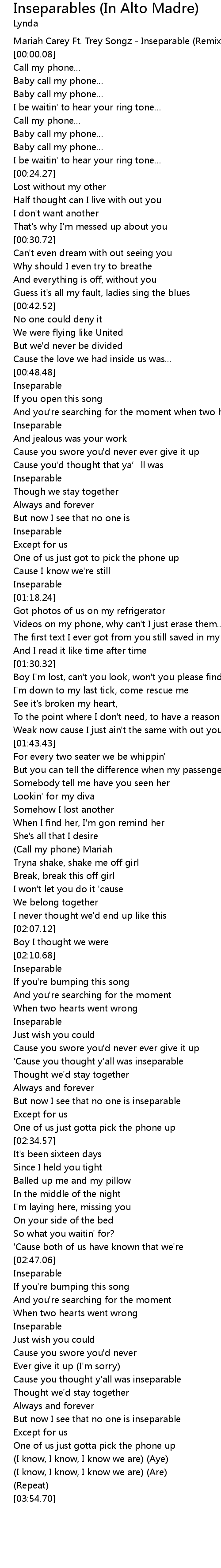 | [00:-7.52] | Mariah Carey Ft. Trey Songz Inseparable Remix |