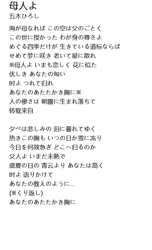 | ※母人よ いまも恋しく 花に似た | |