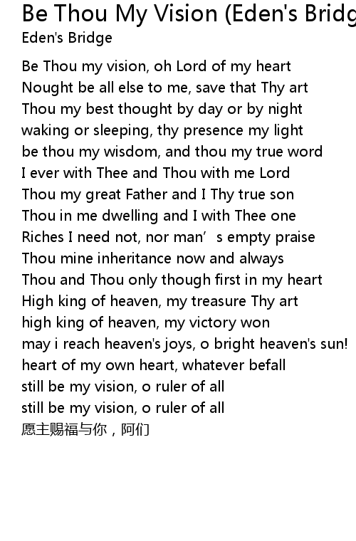 | [00:10.36] | Be Thou my vision, oh Lord of my heart |