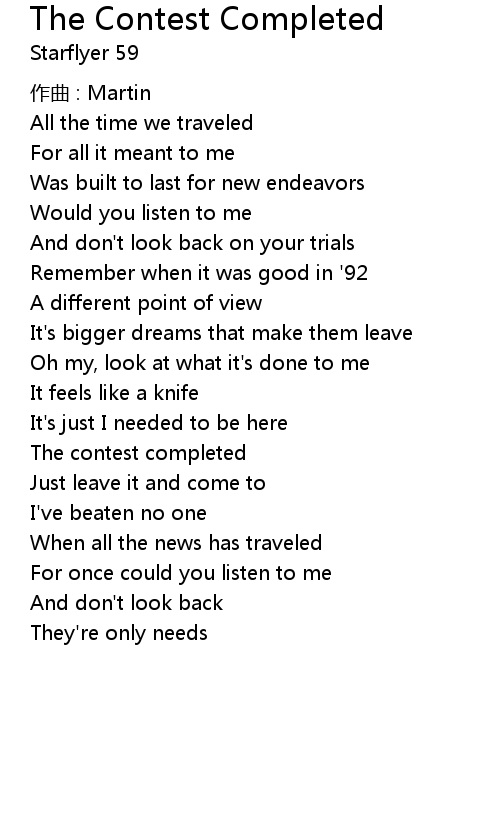 | Song | The Contest Completed |