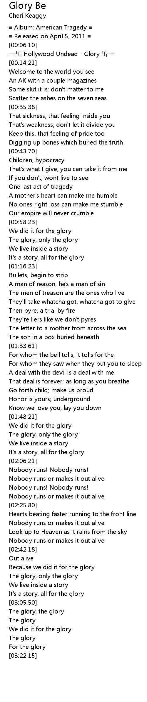 | [00:08.25] | wàn Hollywood Undead Glory wàn |