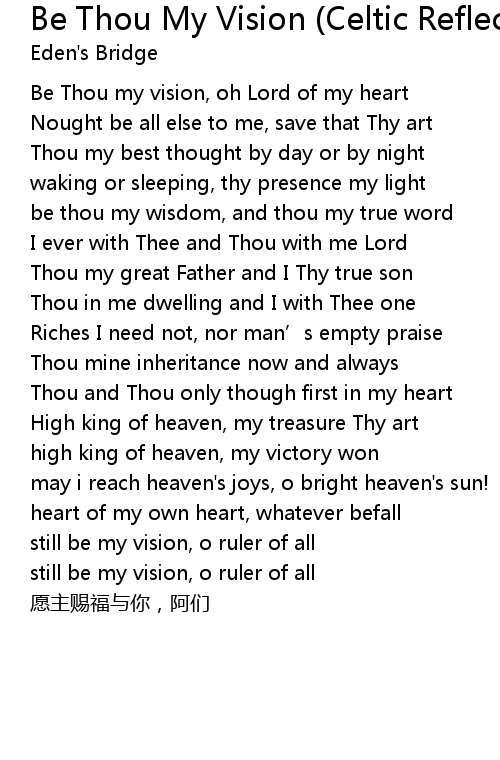| [00:10.36] | Be Thou my vision, oh Lord of my heart |
