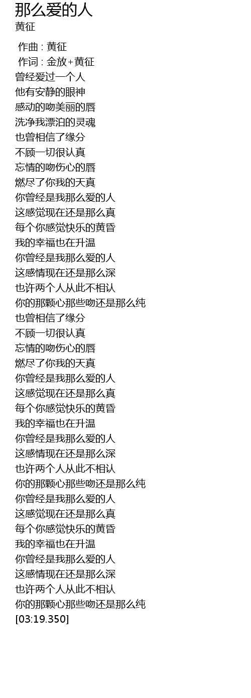 | [01:11.870] | 你曾经是我那么爱的人 |