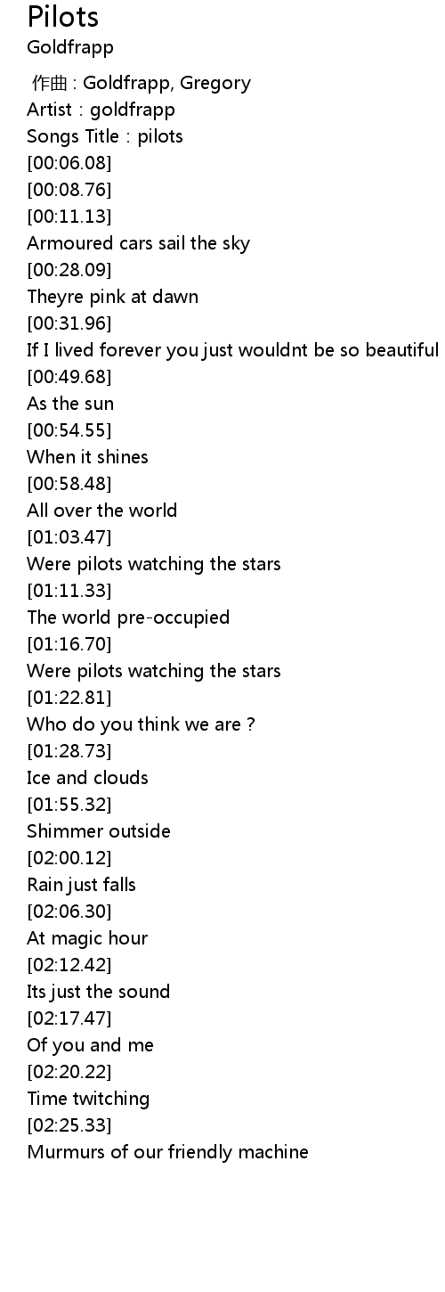 | [00:00.00] | 作曲 : Goldfrapp, Gregory |