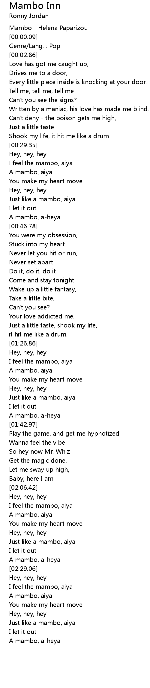 I feel the mambo, aiya |