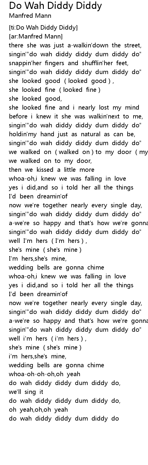 | [01:08.31] | singin'"do wah diddy diddy dum diddy do" |