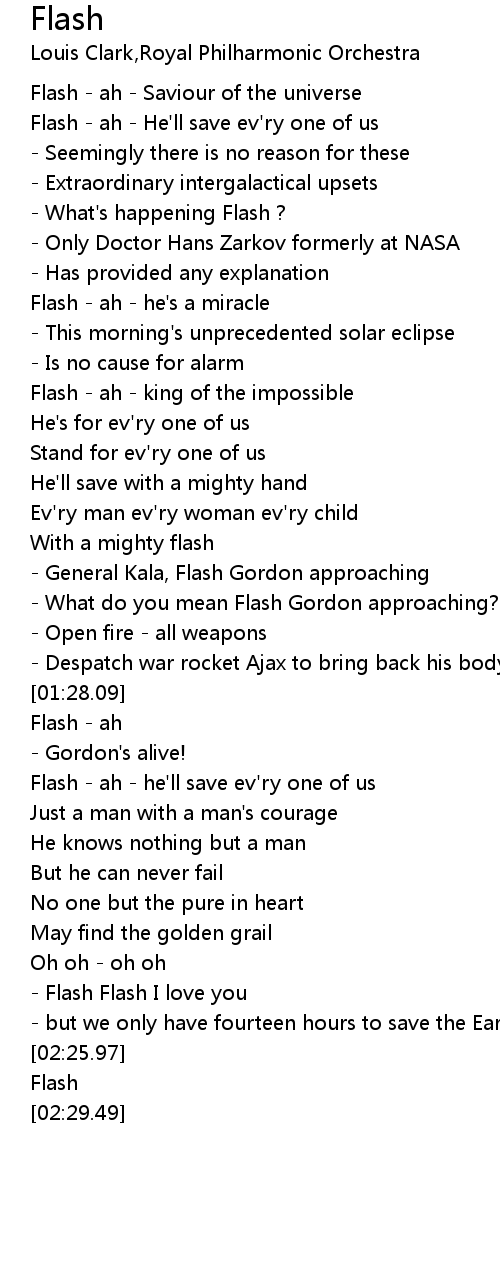 [01:39.15] Flash - ah - he'll save ev'ry one of us