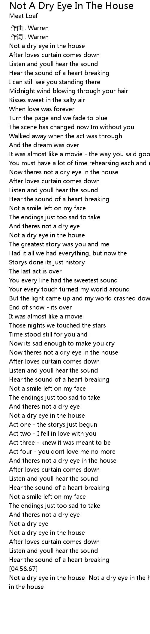 | [05:07.21] | Not a dry eye in the house Not a dry eye in the house Not a dry eye in the house |