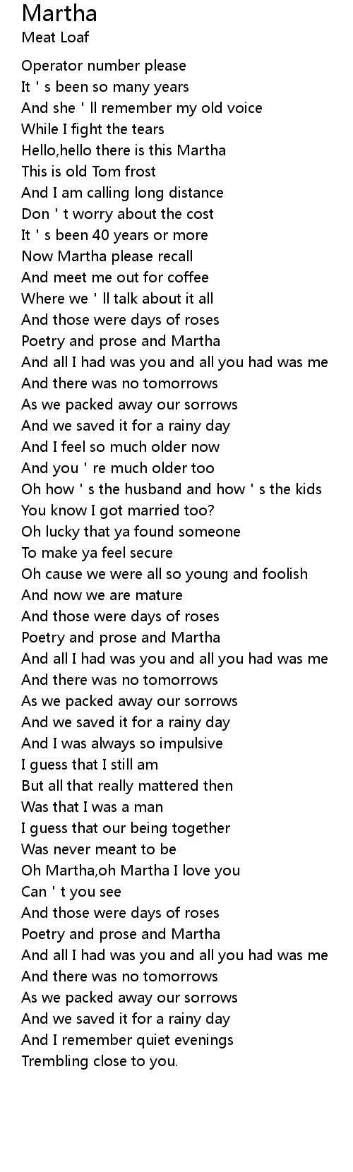 | [03:27.57] | Oh Martha, oh Martha I love you |