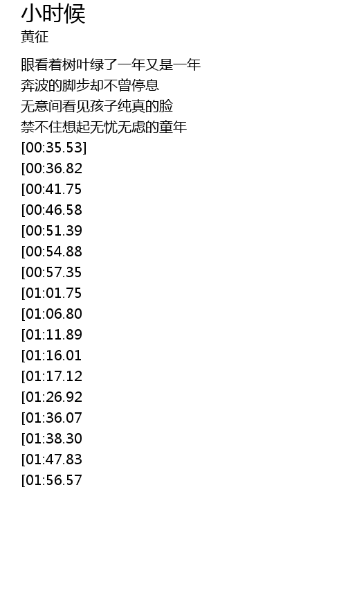 | [02:54.90][01:11.89] | 难忘儿时的歌 |